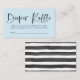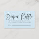 Billet de tombola élégant et branché pour votre baby shower. Les mots "tombola de couche" sont affichés à la police de script d'aquarelle en haut de la tendance avec lettrage à la main contre un arrière - plan bleu clair. Le design comprend une demande d'apporter n'importe quelle couche de taille pour gagner un prix spécial ou ajouter votre texte personnalisé. Le côté arrière de la carte de boîtier présente une conception de bande d'aquarelle noire. Le design s'harmonise avec nos invitations Bonjour Bebe à la douche bébé sur le thème français.