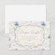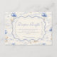 Un design sucré d'inspiration vintage mettant en vedette des nœuds bleus délicats, des détails rayés doux et des illustrations charmantes de jardin de myrtilles. L'œuvre d'art de style toile avec des animaux adorables et des paniers de fruits crée une atmosphère de conte de fées classique dans une palette de bleu poudre doux. Le cadre central orné ajoute de l'élégance tout en gardant l'apparence générale légère, raffinée et intemporelle. Parfait pour une baby shower avec un thème de jardin doux et une touche de charme traditionnel.