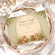 Un design de forêt qui fait fondre le cœur, représentant un doux rassemblement d'amis de la forêt sous une douce verrière de livre d'histoires. Renard, faon, ours, raton laveur et lapin sont assis ensemble dans une prairie automnale chaude encadrée par des arbres doux et des tons de parchemin vintage. La palette terreuse et les détails botaniques délicats créent une atmosphère cosy et nostalgique - parfaite pour une célébration inspirée de la nature. Entièrement personnalisable pour le rendre unique.