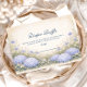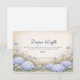 Un design raffiné d'hortensia bleu poussiéreux encadré dans une composition élégante d'inspiration baroque. Des grappes volumineuses d'hortensias dans des tons de poudre douce et de pervenche sont associées à des florales ivoire crémeux et à une verdure sauge atténuée, créant un cadre de jardin équilibré et symétrique. Le fond chaud de style parchemin ajoute une touche antique subtile tout en gardant l'apparence générale aérienne et sophistiquée. Idéal pour une célébration intemporelle avec une esthétique romantique et élégante.