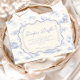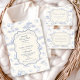 Un design doux et vintage avec des nœuds bleus délicats, des détails rayés doux et des illustrations charmantes de jardin de myrtilles. L'artwork de style toile avec des animaux adorables et des paniers de fruits crée une atmosphère de conte de fées classique dans une palette de bleu poudre doux. Le cadre central orné ajoute de l'élégance tout en gardant l'apparence générale légère, raffinée et intemporelle. Parfait pour une baby shower avec un thème de jardin doux et une touche de charme traditionnel.