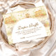 Un doux design de safari de style livre d'histoires mettant en vedette de gentils animaux de bébé aquarellisés, notamment des lions, des girafes et des éléphants, entourés de verdure de jungle douce et de détails botaniques délicats. La palette neutre chaude de crème, d'or miel et d'olive douce crée une esthétique intemporelle inspirée de la nature, tandis que la disposition arquée élégante laisse un bel espace pour les détails d'événement personnalisés.