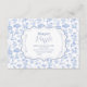 Ajoutez une touche élégante à vos festivités de baby showers avec notre Baby shower de de couches Toile De Jouy Bow, la carte de fermeture de couches. Cette charmante carte présente le motif classique Toile De Jouy, présentant des scènes pastorales complexes qui apportent un sens de sophistication et de grâce à votre célébration. Le délicat accent arc ajoute un détail sucré qui complète parfaitement l'invitation et d'autres décors thématiques. Conçu pour s'intégrer en toute transparence dans votre baby shower, ce boîtier carte invitations invités à participer à une délicieuse tombola de couches. La carte fournit des instructions claires sur le fonctionnement de la tombola, encourageant les invités à apporter un paquet de couches en échange d'une chance de gagner un prix spécial. Imprimée sur un carton de haute qualité, la Diaper Raffle Enclume Card améliore non seulement votre décor de baby shower, mais sert aussi d'élément fonctionnel qui promeut le fiançailles et le divertissement parmi les invités. Le design intemporel le rend adapté à tous les styles de baby shower, des réunions élégantes aux célébrations fantaisistes. Rendez votre baby shower encore plus mémorable avec cette carte d'enceinte exquise, permettant à vos proches de se joindre à l'excitation d'accueillir la nouvelle arrivée tout en ajoutant une touche de charme vintage à votre événement.