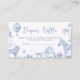 Faites encore plus plaisir à votre baby shower avec notre carte de Baby shower de couches Chinoiserie. Décorée de motifs adorables pour bébé, cette carte personnalisable apporte une touche de douceur à votre événement. Encouragez les invités à participer au plaisir tout en ajoutant une touche pratique à votre célébration. Personnalisez simplement l'excitation de la tombola de couche commencer! BS1072 A