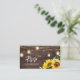 Économisez de l'argent sur les invitations de mariages ou de fêtes avec une petite carte RSVP lors de l'achat en paquets. Tournesol, Bois et Mason Jar String Lights avec repas RSVP. Version de petite taille. Vous voulez une carte RSVP plus grande? Voir notre collection pour un RSVP plus grand. https://www.zazzle.com/collections/sunflower_wood_string_lights_invitations-119496189672050299?rf=238937196885903396