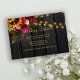Elégant rustique élégante été d'automne hébergement mariage de automne, directions, et d'autres informations carte d'enceinte avec script de typographie or sur bois grange brun foncé avec de beaux tournesols d'or jaune et des roses bordeaux avec des lampes à cordes. ++++++++++++++++++ La carte est adaptée aux mariages de jardin extérieur à fleurs de campagne ou de ferme.