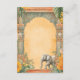 Amaze your guests with this elegant south Indian theme wedding details enclosure card featuring beautiful traditional columns and vintage architectural elements decorated with marigold flowers and banana leaves.