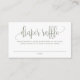 Demandez aux invités d'apporter un paquet de couches de toute taille pour une chance de gagner un prix spécial! L'élégante et simple carte de tombola de couche comporte un script fantaisiste et une typographie simple. Cette carte de tombola vert taupe est parfaite pour tout thème et saison de baby shower. Personnalisez en ajoutant une marque spécifique de couches ou tout autre détail.