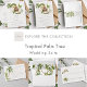 Ce palmier tropical mariage détails carte d'enceinte est un design de jungle tropicale aux couleurs de la nature. Il dispose de palmiers, de forêts tropicales luxuriantes et de bungalows nichés dans un magnifique cadre tropical paradisiaque.