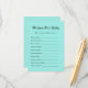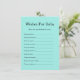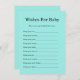 Ajoutez une touche chaleureuse à votre baby shower avec notre carte de boîtier Turquoise Baby & Co. "Wives for Baby". Conçu dans un élégant thème d'inspiration turquoise, cette carte invitation les invités à partager de doux espoirs, des conseils et des bénédictions pour la mère et le bébé. Parfait pour créer un souvenir précieux, chaque carte comporte de charmantes invites à remplir, ce qui en fait un ajout significatif à votre célébration. Idéal pour l'affichage ou les livres de mémoire !