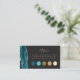 Le bord gauche de cette élégante carte d'enceinte de vêtements de mariage comporte une bordure d'aquarelle bleue turquoise, ornée d'une parties scintillant en faux or. Le mot "Attire" apparaît dans un script d'écriture manuscrite de couleur or, avec votre demande de code vestimentaire en cuivre doré sur un arrière - plan non noir. Customisez facilement les cinq cercles de couleurs en choisissant "Personnaliser ce Modèle > Modifier à l'aide d'outils de conception". Insérez l'URL de votre site Web mariage pour générer un code QR au verso de la carte, et modifiez le texte avec vos noms et la date du mariage.
