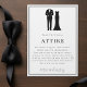 Celebrate to your love story with this minimalist wedding wedding attire card. Designed with an elegant wedding dress and tuxedo and old money black and white color scheme, this card is the perfect stationary to add to your invitation suite for your special day. Add the bride and groom's wedding details for a personalized touch.