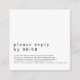 Type simple Mariage QR Code noir blanc boîtier RSVP. Un charmant mini boîtier carré à envoyer avec vos invitations avec un code QR pratique au dos pour eux à RSVP via votre site mariage. Il vous suffit de remplacer l'exemple de code QR par le vôtre, ce qui mène à la page de réponse de votre site Web. L'en-tête est grand en bas en minuscule élégant avec les détails en bas. Personnalisez facilement le texte à vos propres détails.