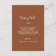 Ce mariage en terre cuite minimale en feuille qui souhaite une bonne carte d'enceinte est parfait pour un mariage boho. Le design se compose d'une simple silhouette de feuille de verdure orangée brûlée et minimaliste de style bohème désert. Personnalisez cette carte d'invitation avec vos noms, et un court poème de bienvenue.