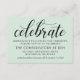 Moderne et chic, la carte de mariage bleu menthe "Celebrate" présente un design typographique noir élégant avec des accents de script de calligraphie audacieux et un texte personnalisé élégant qui peut être personnalisé avec vos informations de réception de mariage.