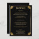 L'avant de cette simple et élégante carte de mariage floral art déco comprend un script vintage chic et populaire et une typographie sans serif en texte or sur un arrière - plan noir, entourée d'une bordure en faux or unique et minimale avec des fleurs rétro dans les coins, combinant le glamour sophistiqué avec le minimalisme. Le dos est orné d'un arrière - plan noir. Vous pouvez customiser le texte en modifiant le modèle de produit pour personnaliser cette carte pour votre propre mariage.