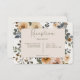 Célébrez votre histoire d'amour avec une touche de charme fantaisiste ! Notre belle carte mariage de réception de mariage dispose d'un cadre délicat de roses d'aquarelle blanc vanille, niché au milieu d'un feuillage brun, turquoise et rouille éclatant. Les fleurs dansent à travers un bel arrière - plan crème, créant un design aussi unique et joyeux que votre amour. Des polices joueuses complètent le design, capturant parfaitement l'esprit léger de votre célébration. La zone de texte elle-même est une crème vanille douce, assurant que vos détails mariages se démarquent magnifiquement. Cette suite captivante est parfaite pour le couple qui recherche une touche de fantaisie et de romantisme. Créé par Simply Farmhouse Press.