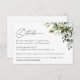 Complétez votre papeterie mariage avec cette carte de détails élégante. Le design présente des feuilles d'eucalyptus et de la verdure sur arrière - plan blanc.