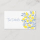 Carte de boîtier Refreshing Blue and Yellow Lemon Vines "The Details". Cette carte ajoute une touche délicieuse à vos invitations à l'événement ou à vos faveurs. Le design, avec des vignes au citron bleu et jaune, saisit l'essence d'une célébration d'inspiration méditerranéenne. Avec un espace suffisant pour les détails de votre événement, cette carte assure à vos invités tous les renseignements dont ils ont besoin d'une manière élégante et rafraîchissante.