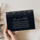 Cette carte d'accompagnement de vœu de lune de miel calligraphié avec confettis argentés est parfaite pour un mariage rustique. Le design simple et élégant présente une typographie classique et fantaisie avec un fond bleu et des confettis argentés.