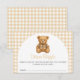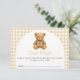 A rustic themed baby shower "We Can Bearly Wait" featuring cute preppy bear wearing luxury designer plaid outfit in brown, beige colors and gingham background. You can easily personalize this with your details.