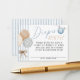 Personalize this adorable light dusty blue, beige, and white "We Can Bearly Thank You Enough!" teddy bear theme baby boy shower diaper raffle ticket style card, 2-sided (3.5x2.5" in size), featuring a sweet watercolor checkerboard balloons and blue diaper over blue ticking pinstripes on the front and a teddy bear wearing a blue bow over stripes on the back side. It's the cutest on-theme way to get lots of diaper and wipe gifts for mommy-to-be! Discover the matching stand alone table sign for the day of, + invitation, books for baby card, teddy grahams guess cards & sign, welcome sign, bingo & game cards, decor & more in the full collection above ♥ Custom design requests, and template questions are always welcome - click the "message" button or email direct (with a quick response time!): contact@figandlilyco.com. Design is lovingly created by Fig and Lily Studios - sending blessings and thanks for being here with us ♥