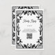 Un design moderne de cowboy occidental avec des éléments dessinés à la main d'un crâne de vache, des fers à cheval, des ornements floraux et des cactus. Le mariage à bordure florale noir et blanc est orné de fleurs dessinées à la main, de cactus, de crâne de vache et de fer à cheval. Ce mariage campagnard contemporain moderne de style occidental est idéal pour toutes les saisons. Un élégant ranch noir et blanc, une ferme ou une grange design avec des illustrations dessinées à la main. Un cowboy Western Country à thème mariage RSVP boîtier carte design avec des éléments modernes et élégants. Des invitations de mariage et d'autres articles de papeterie sont également disponibles.