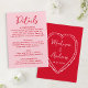 Share all the important information with this romantic wedding details card designed to coordinate with Valentine’s Day-inspired wedding stationery. The front of the card features “Details” displayed in a bold handwritten red script with your wedding information shown below on a soft pink background, making it perfect for sharing accommodations, travel information, dress code notes, or weekend events. The back of the card showcases a hand-drawn pink heart framing the couple’s names and wedding date on a rich red background, adding a playful retro touch. With its handwritten accents, cheerful color palette, and vintage-inspired charm, this wedding details insert is ideal for February weddings, Valentine’s weddings, and couples who love fun, modern stationery with a heartfelt feel.