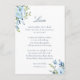 Whimsy Watercolor Love est Patient Blue White Encape Card. L'avant est décorée de jolis accents bleus sur le blanc immaculé pour être personnalisé par vous avec des informations pour vos invités et est décorée avec de jolis accents décoratifs bleus créés à partir de fleurs aquarelles peintes à la main numériquement ajustées, des feuilles et un petit papillon doux. Le dos dispose de 1 Corinthians 13 : 4 - 13 et il est si joli que vous pourriez le cadrer. Excellent pour les mariages, fiançailles, anniversaires et autres occasions spéciales. Visitez notre magasin Austen & Grace pour voir la suite mariage complète, les produits correspondants et plus encore, et contactez-nous si vous avez besoin d'aide contact@austenandgrace.com