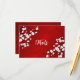 Pretty white cherry blossoms on a ruby red background.