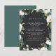 Notre collection de mariage floral aquarelle White Peony présente une verdure peinte délicatement, un feuillage botanique vert et des fleurs de pivoine blanches et ivoire. Personnalisez cette carte d'accompagnement avec les détails clés du mariage, tels que les hébergements d'hôtel, les réceptions de bienvenue, les dispositions de voyage, le site web du mariage, ou toute autre information pertinente pour vos invités.