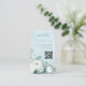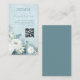 White Roses Hellebores Silver Eucalyptus floral wedding enclosure card featuring elegant calligraphy script modern watercolor flowers frosty pale blue background and QR code