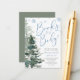 Le baby shower hivernal élégant apportez une carte de demande de réservation. Le design comprend une police de script de calligraphie moderne, des flocons de neige bleus et des arbres de forêt d'aquarelle. FOILE NON BLEU