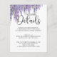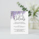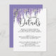 Wisteria arbre violet pastel Mariage Détails design.Carte offre un design simple et élégant encadrant vos détails mariages clés, comme les chambres d'hôtel, les informations de bienvenue de la réception, le site Web et plus encore. Ajoutez votre texte personnalisé à l'aide des champs fournis et utilisez la fonction Personnaliser pour ajuster les polices, les tailles et l'espacement. Les couleurs pastel sont parfaites pour les Mariages du printemps et de l'été.