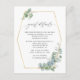 Eucalyptus mariage carte de détails invités avec cadre géométrique or conçu pour être rapidement et facilement customisé à vos détails de l'événement.