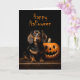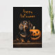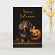 Envoyez des sourires et des encouragements pour Halloween avec notre carte Dachshund adorable, conçue pour apporter joie et rire à la célébration éffrayante de n'importe qui.