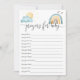 Permettez à vos invités de baby shower de prier pour le petit avec une carte d'activité de prières pour bébé. Les invités peuvent remplir cette carte boho sunshine et arc-en-ciel et laisser des pensées douces que les futurs parents pourront lire et chérir plus tard.