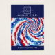 Écouter la carte d'affichage du produit avec un motif de teinture à cravate patriotique étoiles et rayures en bleu, blanc et rouge, et votre logo personnalisé. Texte personnalisable à l'arrière.