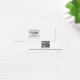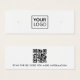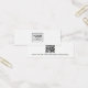 Carte d'affichage de mini produit à oreille blanche avec modèle de logo personnalisé centré et code QR sur le dos. Les repères d'oreille peuvent être ajustés en ajoutant et en enlevant des espaces dans le champ modèle, et en déplaçant l'élément entier dans l'outil de conception.