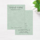 Écouter la carte d'affichage du produit avec votre marque dans une police de script moderne sur une texture arrière - plan douce vert clair. Texte et logo personnalisables sur le dos.