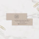 Mini carte d'affichage de produit marron mocha clair ou couleur personnalisée avec logo personnalisé centré modèle et icônes de médias sociaux. Les repères d'oreille peuvent être ajustés en ajoutant et en enlevant des espaces dans le champ modèle, et en déplaçant l'élément entier dans l'outil de conception.