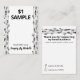 Si vous cherchez un moyen simple d'afficher vos échantillons de savon et que vous recherchez un design net et net, cette carte en noir et blanc est un excellent moyen de montrer vos savons faits main à des clients potentiels à votre stand de marché. La conception a une chaîne verticale, le coeur et la feuille. pour utiliser cette carte, coupez soigneusement les lignes verticales au milieu de la carte avec une lame et une règle, puis filez votre échantillon de savon à travers, gardez-le en place avec un ruban adhésif double face sur le dos.