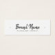Carte d'affichage de mini produit avec icônes de médias sociaux et votre nom de marque dans une police de script de calligraphie élégante. Les repères d'oreille peuvent être ajustés en ajoutant et en enlevant des espaces dans le champ modèle, et en déplaçant l'élément entier dans l'outil de conception. Design élégant, moderne, minimal