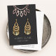 Marquez votre entreprise de conception de bijoux avec ces élégantes cartes d'affichage verticales en gris charbon riche avec accents d'or rose. Le design comporte une illustration de collier orné en haut en feuille d'or rose faux, avec deux lignes de texte personnalisé en bas. Deux points de guide sont l'endroit idéal pour percer l'écran d'oreille. Ajoutez les coordonnées de votre joaillier à l'envers.