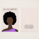 Cette carte d'oreille est le moyen parfait pour styliser votre emballage et ajouter votre propre flair et personnalité personnelle. Elle représente une illustration artistique de la mode dessinée à la main d'une femme aux cheveux noirs avec une afro et une chemise violette pourpre avec des trous d'oreille placés parfaitement au-dessus de ses oreilles pour que vous puissiez faire croire qu'elle porte vos boucles d'oreilles. L'arrière - plan est un simple ton d'ivoire terrestre avec des taches. (concepteur de contact pour les changements de couleur) Au verso, il inclut des informations de contact qui peuvent être modifiées complètement ou personnalisées à vos détails. C'est une façon professionnelle, cool, unique, girly, et tendance d'afficher votre produit avec fierté. (les trous d'oreille ne sont imprimés que par des marqueurs, la perforation doit être complétée par le client) ***IMPORTANTE NOTE DE CONCEPTION : Pour toute demande de conception personnalisée comme les demandes de produit assorties, les changements de couleur, les changements de placement ou toute autre demande de modification, veuillez cliquer sur le bouton "CONTACT" ou envoyer un courriel au concepteur directement à lafemme.art@gmail.com. Vous pouvez même lui envoyer par courriel une demande pour un design entièrement personnalisé et nouveau.