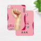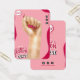 La carte présente une illustration dessinée à la main d'un bracelet pour sentir l'aspect du bracelet mis sur un poignet, avec un arrière - plan rose et la lettre "Faisons aplatir la courbe." "Nos cartes d'affichage bracelet sont la façon parfaite de montrer vos bijoux et attirer de nouveaux clients si vous possédez une entreprise de bijoux." Commandez maintenant !