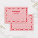 Carte d'affichage à oreilles avec une forme de griffes rouge sur un arrière - plan rose. Les trous modèles peuvent être ajustés ou supprimés, ainsi que toutes les informations de votre entreprise. Ajoutez vos médias sociaux ou votre site web en bas.