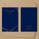 Une carte d'affichage marine moderne comporte une bordure géométrique à effet doré raffinée, une marque modifiable en haut, et deux bracelets de trou imprimés subtils pour un placement précis de l'étalon, en mettant l'accent sur les bijoux tout en renforçant la marque. Idéal pour les créateurs et les petites boutiques, il photographie magnifiquement pour les listes Etsy et élève les emballages et les vitrines avec un look épuré et minimaliste. Les couleurs, les polices et la taille peuvent être customisées pour correspondre au style de la marque. Les marqueurs et l'or sont imprimés.