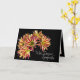 Photo de fond d'une belle grappe de fleurs marguerites rouges et jaunes contre un arrière - plan noir. Les fleurs recouvrent l'avant de cette carte qui peut être utilisée comme carte de remerciements, carte d'anniversaire ou toute autre carte de votre choix. Customisez-le avec votre texte et/ou vos images pour en faire un unique !