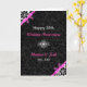 Damas floral noir élégant avec ruban rose. 25e anniversaire de mariage